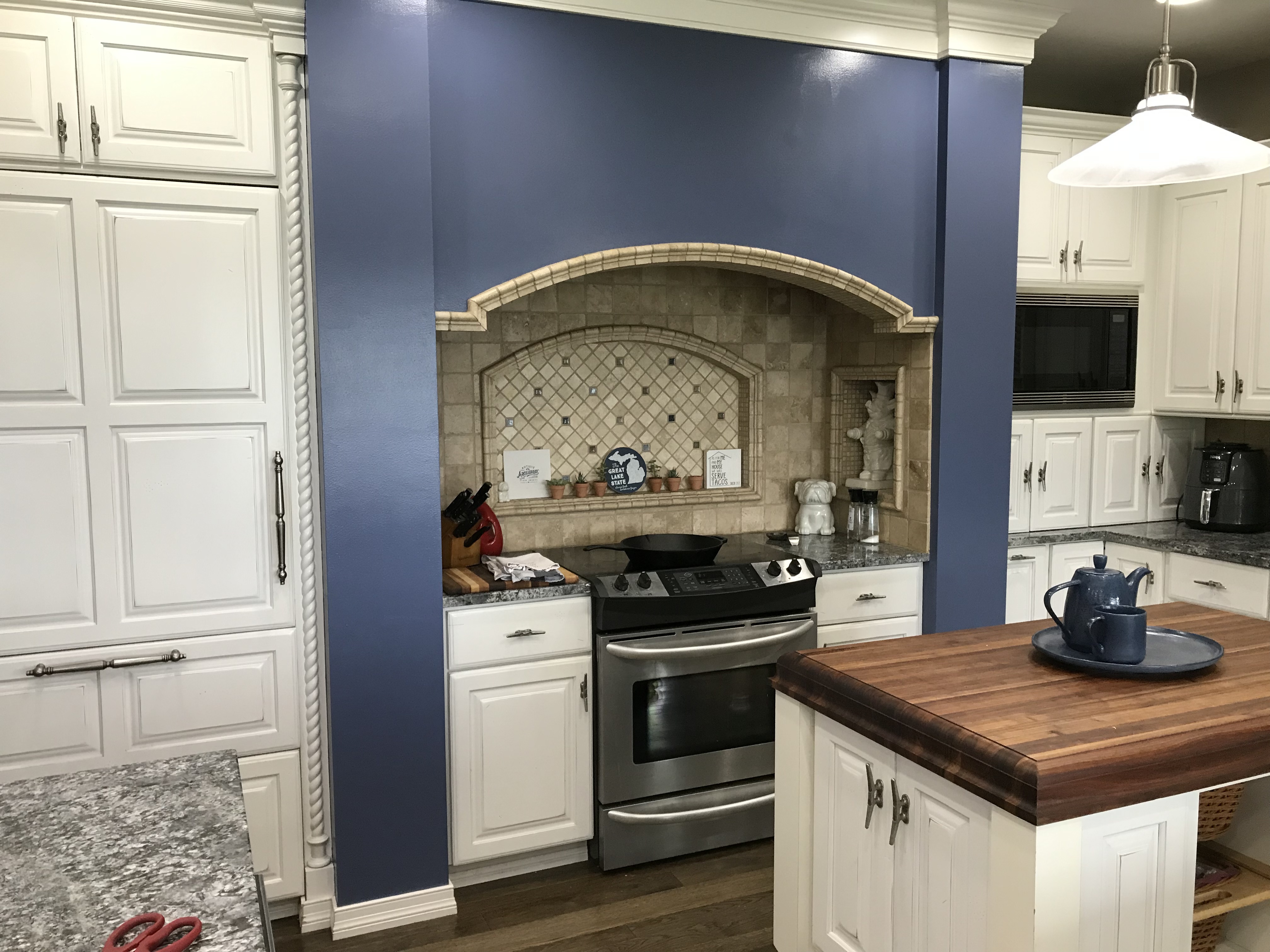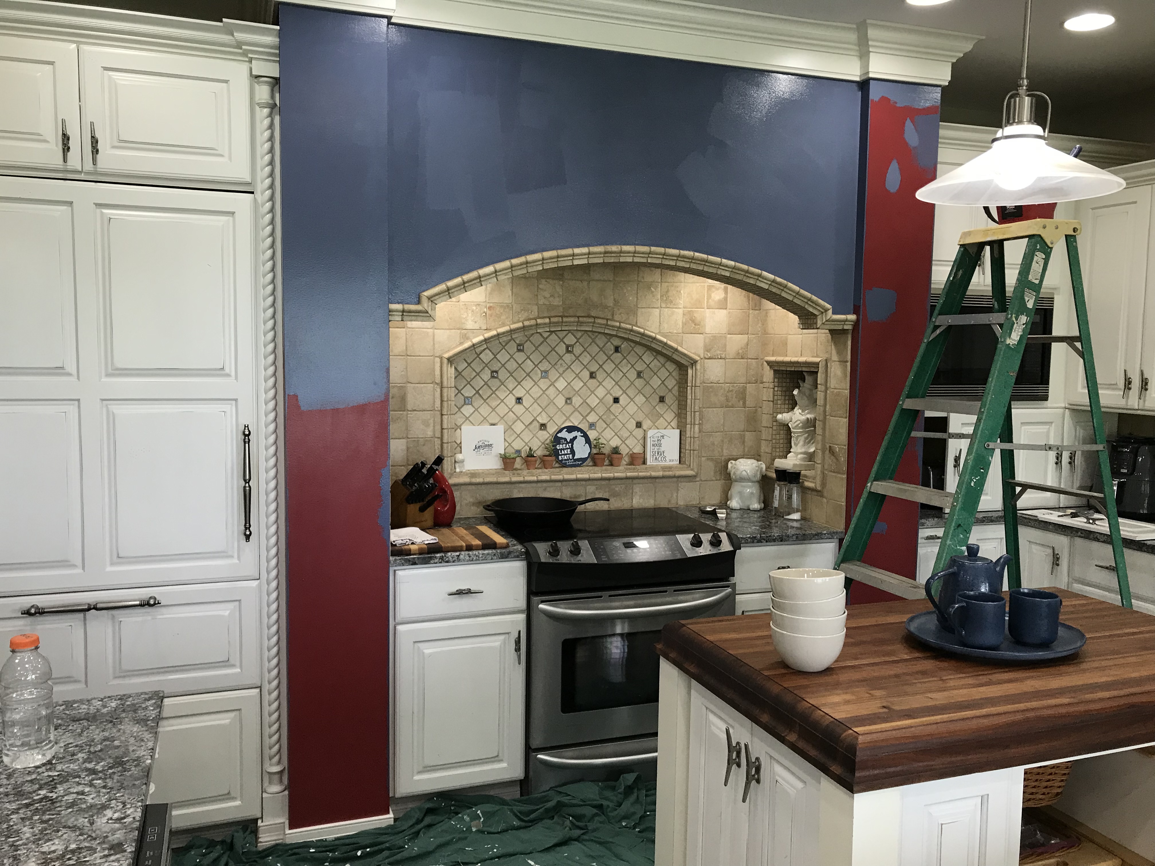 Just south of Hillsdale, MI, is a lovely home that looks over one of our many lakes. The red accent theme of their house was getting old and they were ready for something new. They decided to start with the kitchen and one of the rooms upstairs.