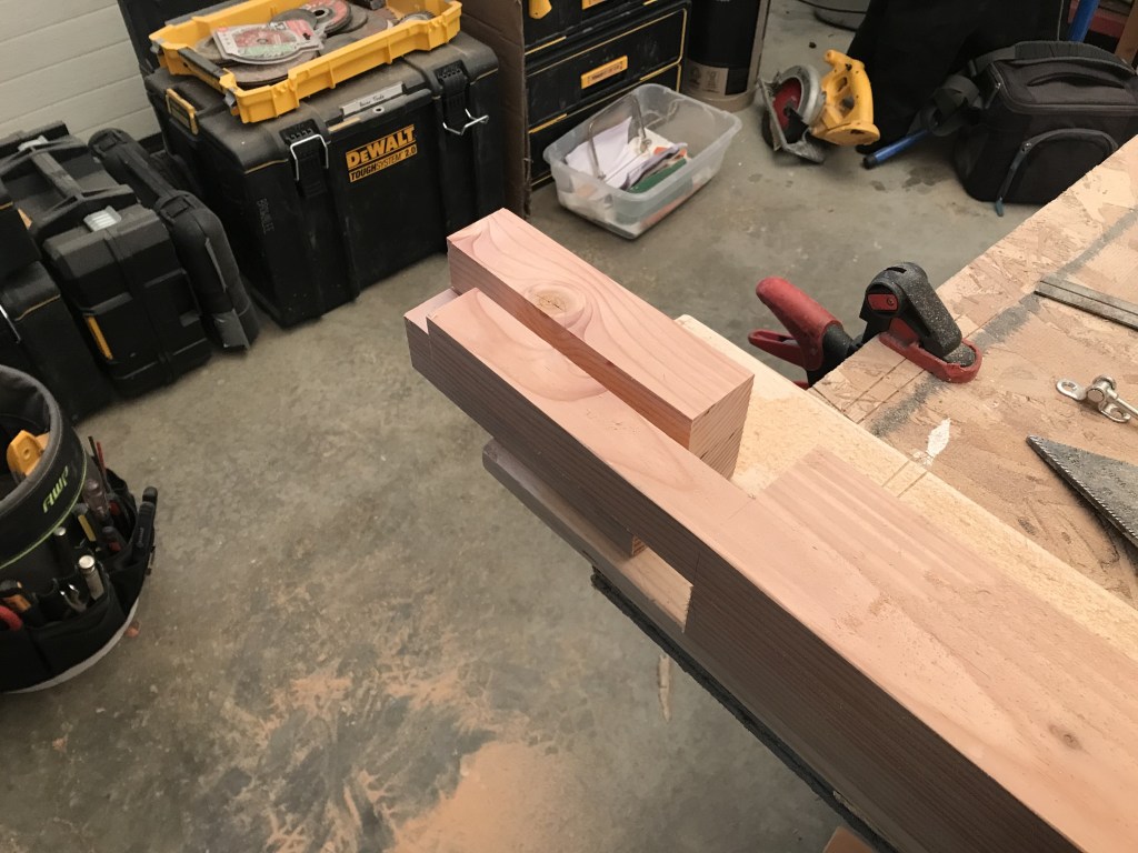 The bases of the post were also cut to fit the slope of the stairs. We even had to get out the old fashioned hand saw to complete these cuts!